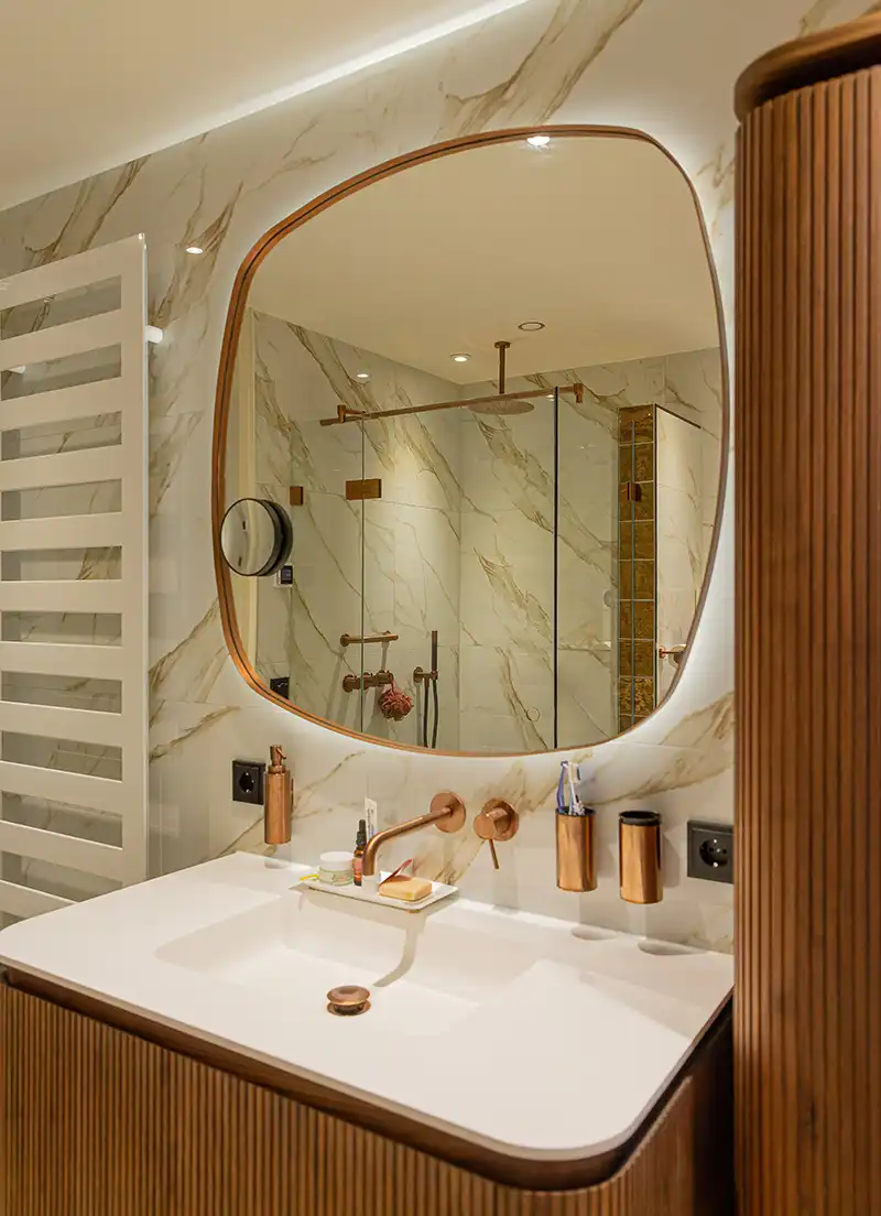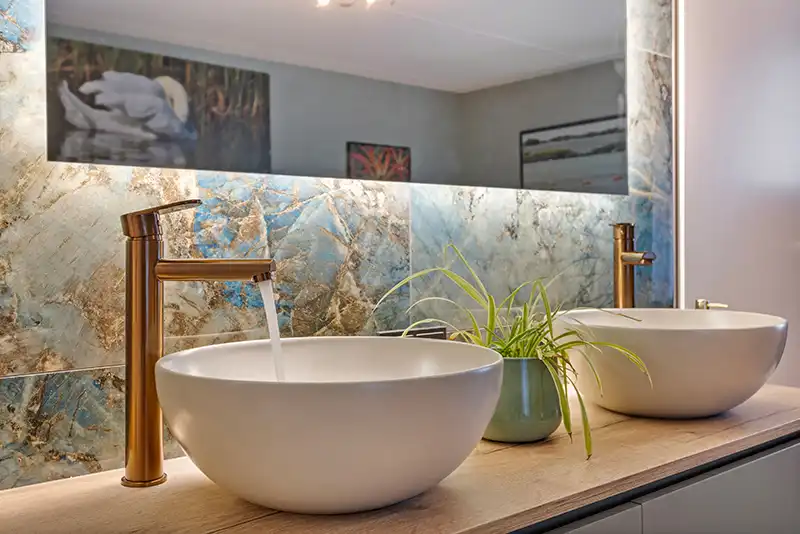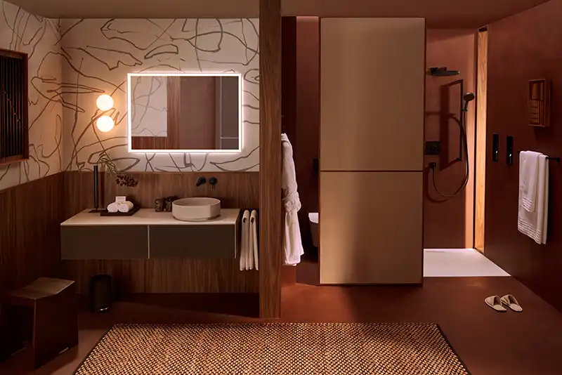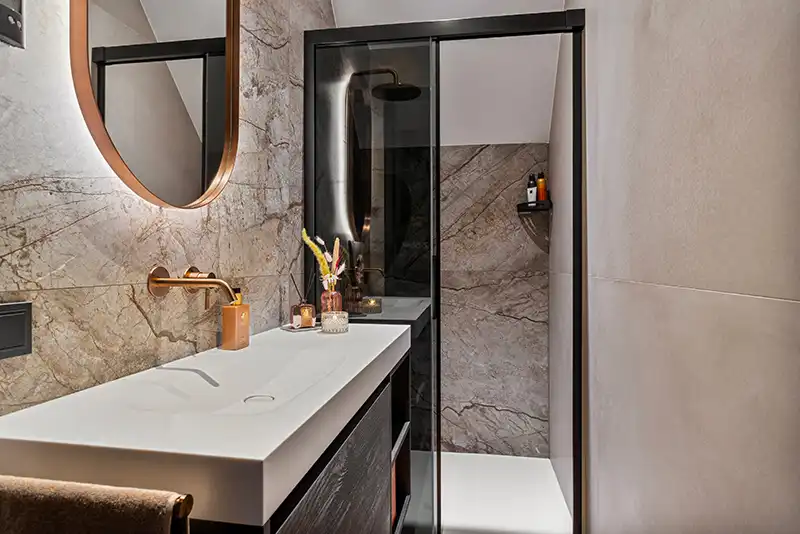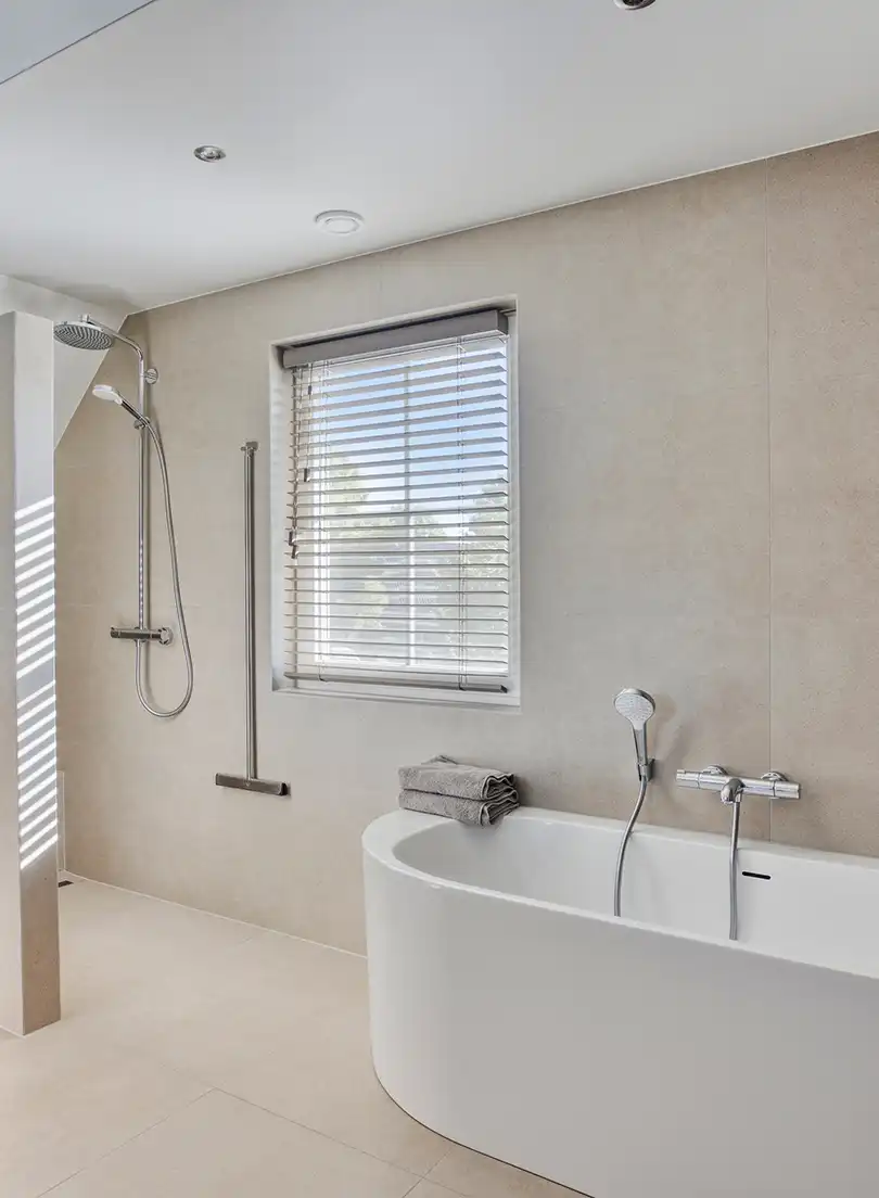 Na jaren van strak zwart en minimalistisch design, verschuift het interieurbeeld naar zachter en warmer. “De Japandi-stijl (een mix van Japans vakmanschap en Scandinavische rust) blijft enorm populair”, vertelt Daniëlle. “Maar waar het eerst vooral koel en minimalistisch was, wordt het nu warmer en natuurlijker. Denk aan zandtinten, beige, linnen, crèmekleur en zachte contrasten. We combineren dat met brons en hout voor een rustig, maar rijk gevoel.”