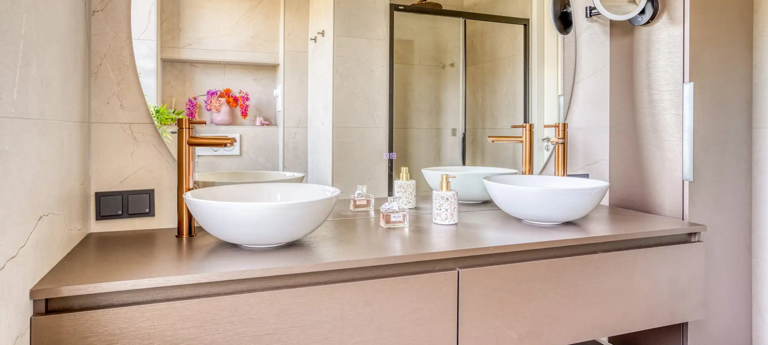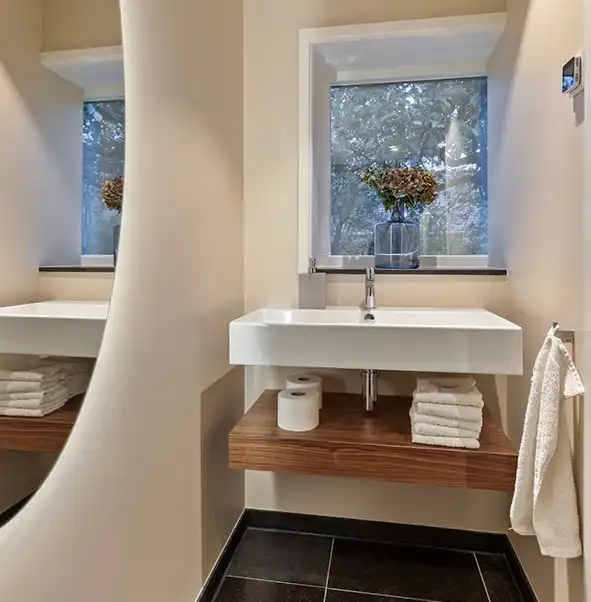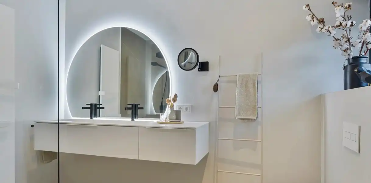 Scandinavische badkamers stralen rust, eenvoud en functionaliteit uit. Deze stijl is gebaseerd op licht, ruimte en natuurlijke materialen. Denk aan witte of lichtgrijze tegels, houten accenten en subtiele pasteltinten die zorgen voor een frisse en harmonieuze sfeer. In Scandinavische badkamers draait het om praktisch design zonder in te leveren op sfeer. Zwevende meubels, strakke lijnen en slimme opbergmogelijkheden dragen bij aan een opgeruimd en luchtig geheel. Deze stijl is ideaal voor wie houdt van een rustige, natuurlijke omgeving met een moderne twist.