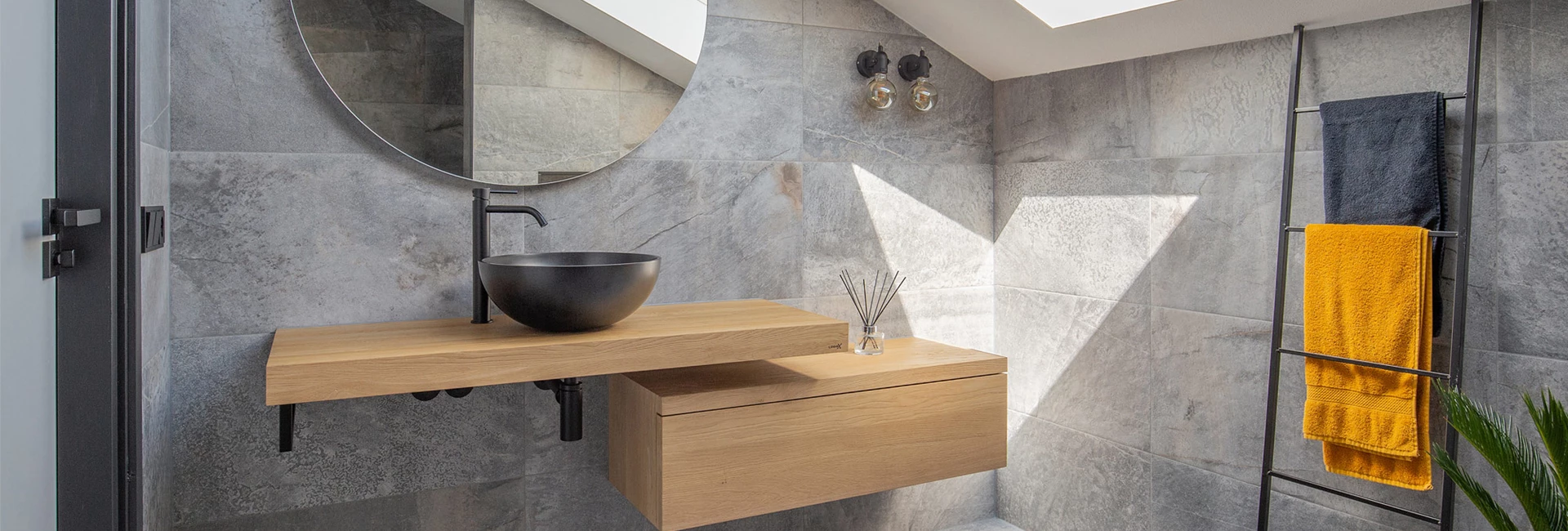 Creatief en mooi gebruik van je schuine dak. Een badkamer met schuin dak lijkt misschien moeilijker in te delen, maar niets is minder waar. Deze stoere industriƫle badkamer laat dat wel zien.