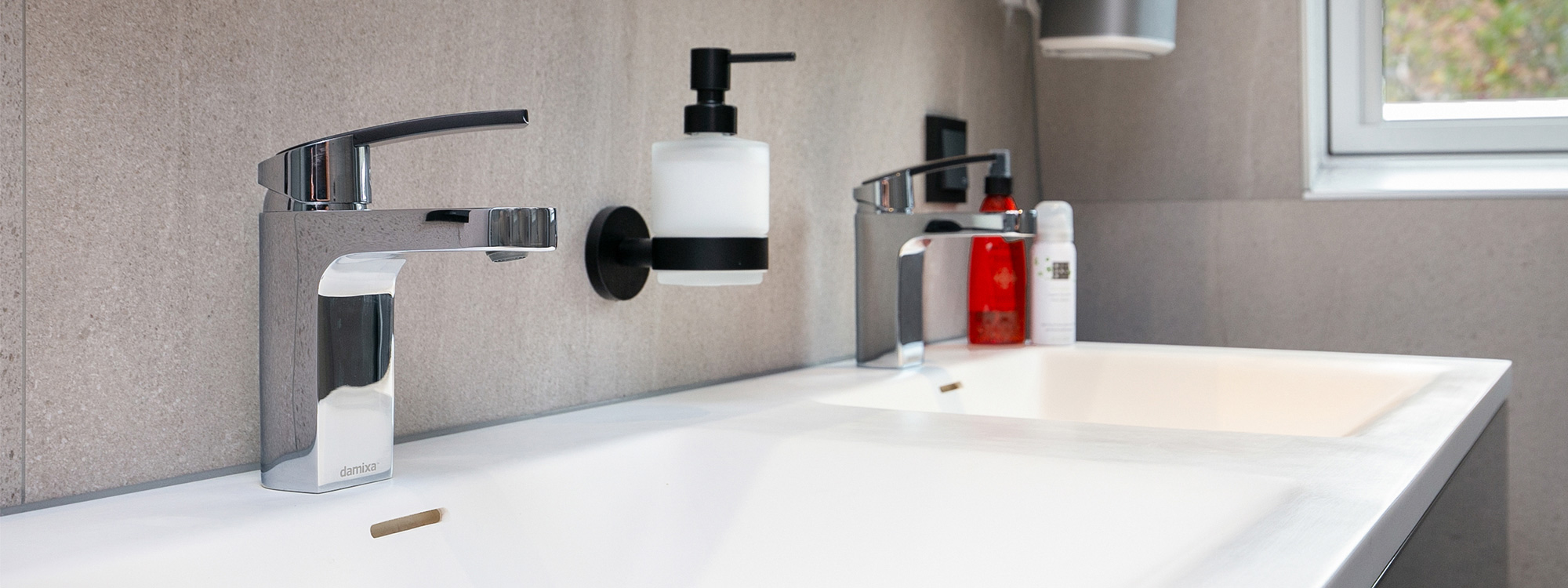 In kleine badkamers is het een van de lastigste opgaven: het creƫren van een specifieke stijl en dan maar hopen dat de ruimte tot leven komt. In deze compacte ruimte is vooral gebruik gemaakt van rustige kleuren waardoor de badkamer een modern industriƫle uitstraling heeft.