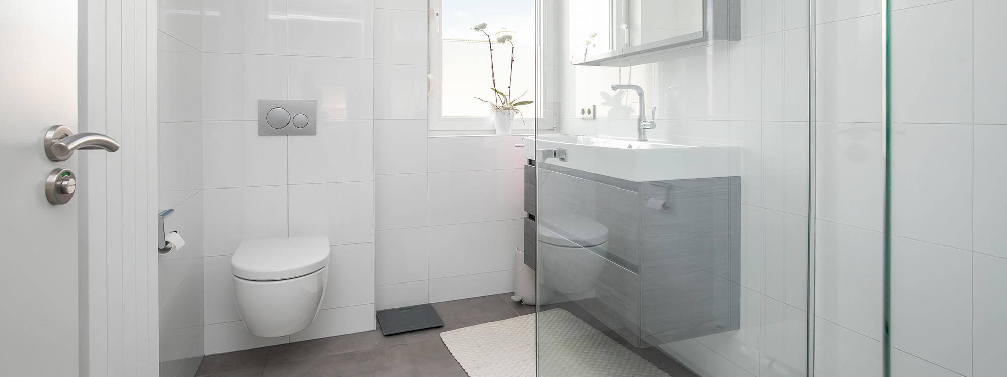 In deze badkamer zie je goed het effect van lichte kleuren en veel daglicht. Door het gebruik van lichte, neutrale kleuren lijkt de ruimte meteen groter. Dit ontwerp bewijst dat een witte tegel zeker niet saai hoeft te zijn.